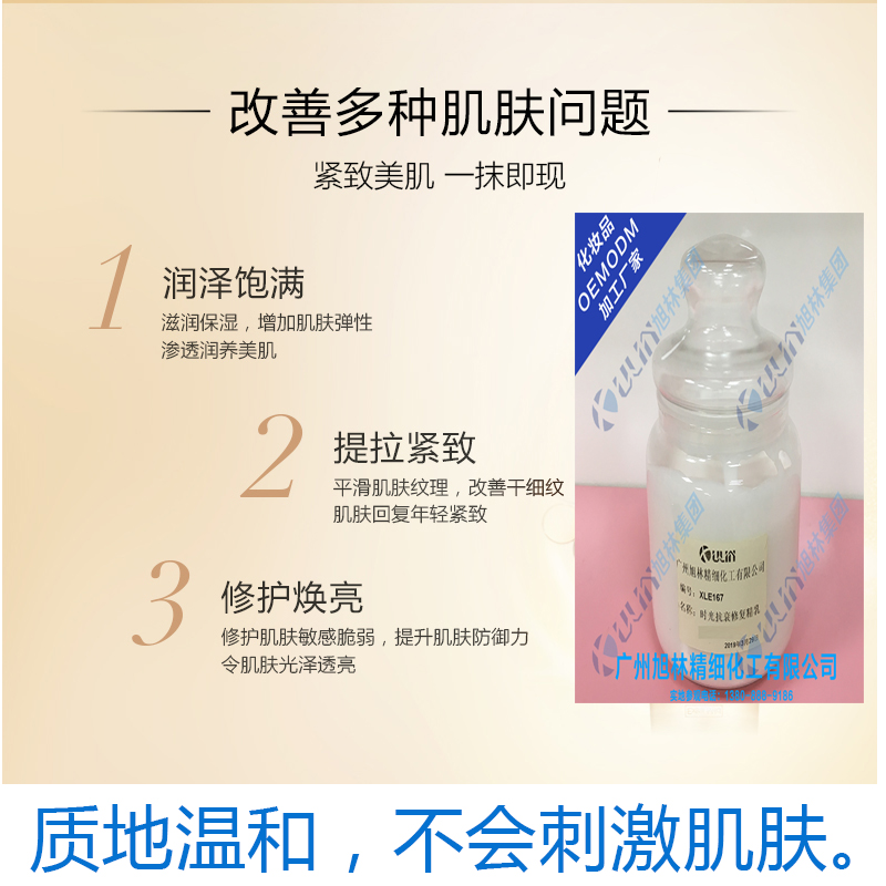 廣州旭林化妝品精細(xì)化工有限公司是一家集研發(fā)、生產(chǎn)為一體的專業(yè)化妝品 企業(yè),擁有超過 1 萬平方米達(dá)到 GMP 標(biāo)準(zhǔn)的現(xiàn)代化廠房,在行業(yè)內(nèi)頗具 口碑,以研究開發(fā)、專業(yè)從事高端功效型護(hù)膚產(chǎn)品、長期研究開發(fā)高端功效 化妝品以及外用保健品的; 產(chǎn)品項(xiàng)目覆蓋面部、身體、抗衰、私密、健康醫(yī) 療等科 技化領(lǐng)域。堅(jiān)持創(chuàng)新超越、務(wù)實(shí)經(jīng)營、精益求精的發(fā)展理念,提供 產(chǎn)品(品牌) 配方定制、產(chǎn)品開發(fā)、生產(chǎn)制造、模式應(yīng)用、售后跟進(jìn)等精 準(zhǔn)服務(wù)。 嚴(yán)格按國家各項(xiàng)政策、法規(guī)實(shí)施經(jīng)營管理,積極進(jìn)取,求實(shí)創(chuàng)新。嚴(yán) 格執(zhí)行質(zhì)量體系的同時按 GMPC 要求組織日常全過程生產(chǎn),使每一支驗(yàn) 收合格的產(chǎn)品,在市場上讓不同地區(qū)的消費(fèi)者滿意,從而讓企業(yè)贏得更多 消費(fèi)者的青睞。